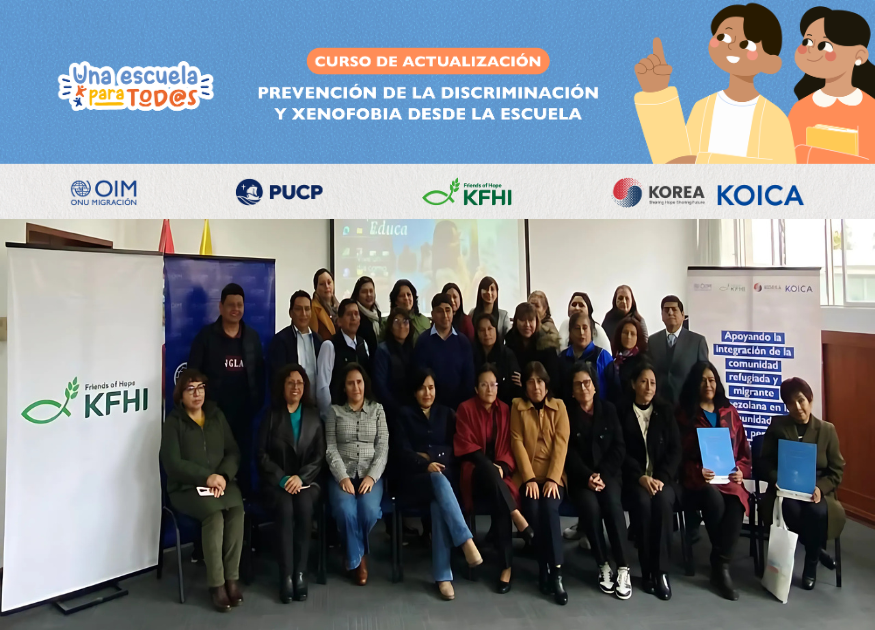 Desde el 08 de julio del 2025, la ONG KFHI trabajó en alianza con el CISE PUCP, el Curso de actualización en Prevención de la discriminación y xenofobia desde la escuela, bajo la modalidad semipresencial con una duración de 40 horas. Las y los participantes convocados fueron 41 docentes de secundaria de Tutoría, Ciencias Sociales, DPCC y Comunicación de 9 II. EE. del distrito de Ate.